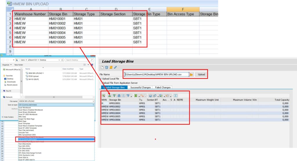 - Storage Bin Uploading Tool If you need to upload a significant number of storage bins quickly, SAP EWM offers an upload tool accessible via /N/SCWM/SCWM/SBUP. This tool is useful for large-scale bin creation where bin data is pre-defined in a file or template.
