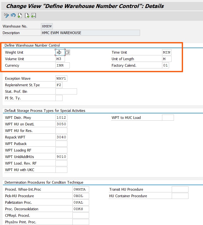 Path: SPRO> IMG> SCM EWM> EWM> Master Data> Storage Bins> Define warehouse Number Control