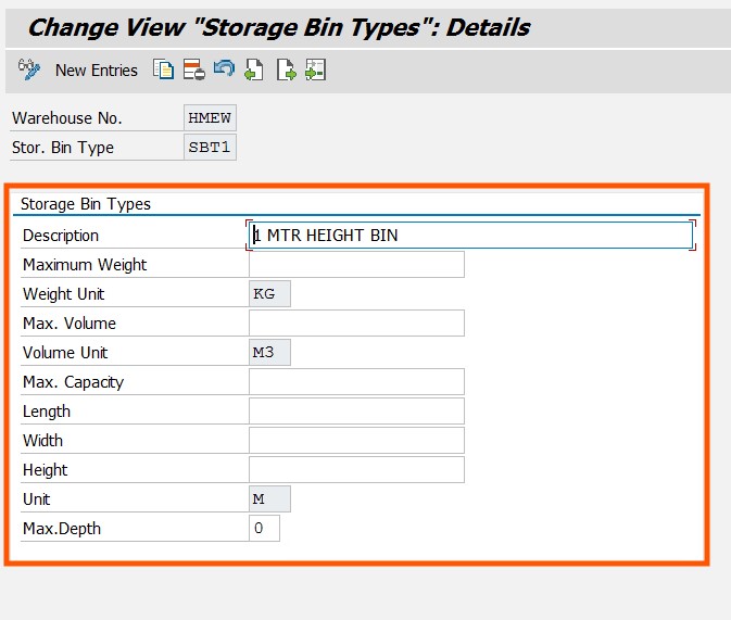Path: SPRO> IMG> SCM EWM> EWM> Master Data> Storage Bins> Define Storage Bin Type